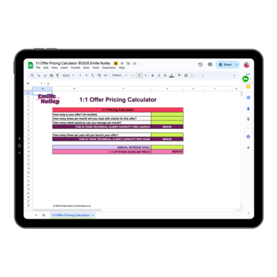 This is the resource I wish I’d had when I was charging £500 for work that left me exhausted and still broke. Now I’m helping clients raise their rates to £2k+, price their full offer suites with confidence, and finally stop ghosting themselves every time they try to scale.
