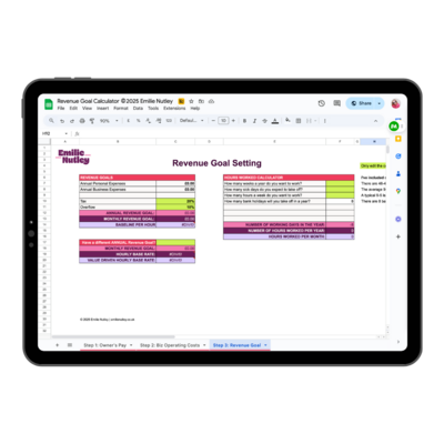 Wondering what to charge to actually hit your goals? This tool helps you reverse-engineer your pricing based on your ideal income, time, and offer type. It shows you what’s possible, and what needs adjusting, so you can stop guessing and start planning.